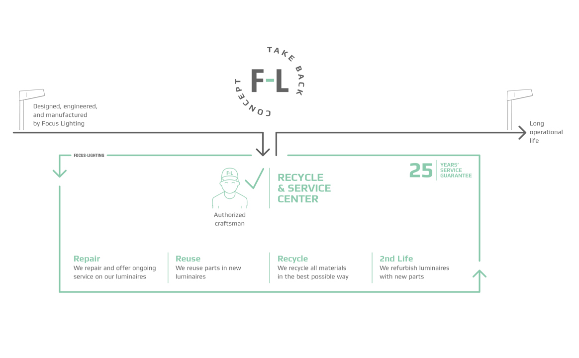 Our sustainable approach extends the lifetime of our luminaires, reduces the need for replacements, and supports circular economy principles by allowing reusability of components.