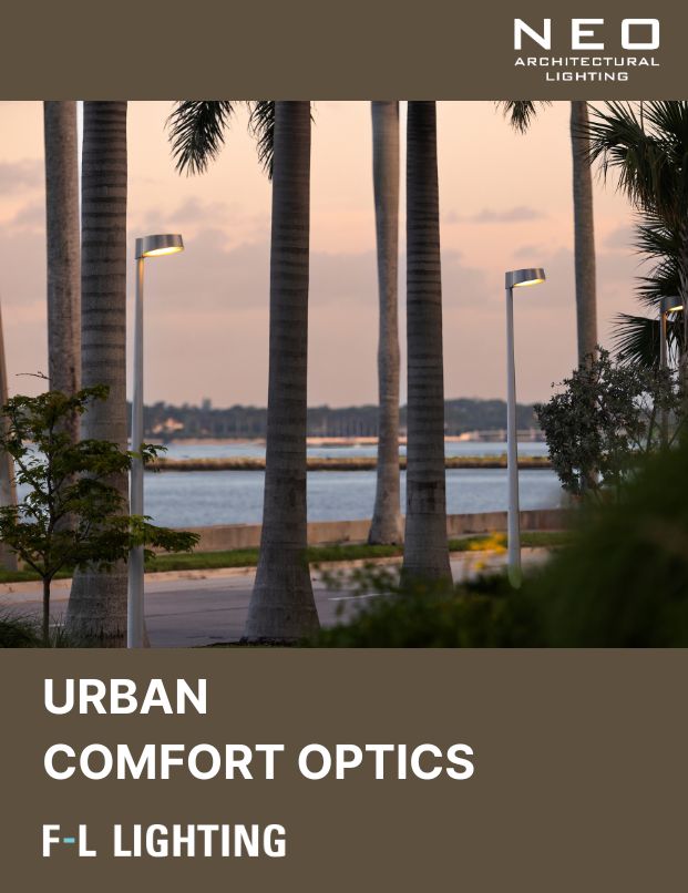 Glare-free, Pedestrian friendly luminaires fitted with urban comfort optics.
